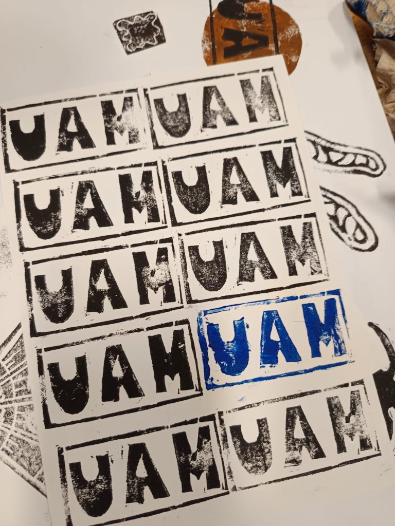 Lino Print (Linoldruck) ist eine traditionelle Drucktechnik, bei der ein Motiv in eine Linoleumplatte geschnitzt wird. Die nicht weggeschnittenen Flächen bilden später das Druckbild. Nach dem Auftragen von Farbe mit einer Walze wird die Platte auf Papier oder Stoff gepresst. Kurz vor Halloween könnt ihr bei uns auch Kürbisse schnitzen, mit Unterstützung unserer Künstler, die mit euch ganz eigene Ideen entwickeln und euch beratend zur Seite stehen.